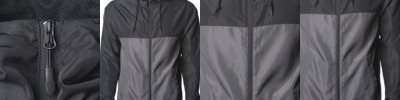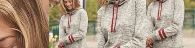 - Contrast melange fleece on hood, shoulders, and sleeves