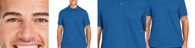 4 oz./yd² (US), 6.7 oz./L yd (CA), 100% recycled polyester embossed print interlock Moisture-wicking Anti-microbial performance Partial-open henley with metal two-snap closure Side vents Hi-low hemline