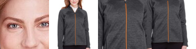 6.8 oz./yd² (US), 11.4 oz./L yd (CA), 100% polyester mélange brushed-back fleece with UTK Ceramitech™ print Active fit Princess seams for flattering feminine fit Coverstitch details throughout Center front coil zipper with contrast teeth, semi-auto-lock slider and rubber pull Lower pockets with invisible zippers UTK Ceramitech™ technology provides improved thermal retention against the body through specialized printing UTK Hydropel™ technology repels water without sacrificing comfort in wet conditions