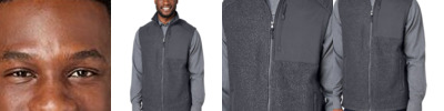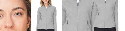 11 oz./yd² (US), 18.4 oz./L yd (CA), 100% polyester boucle sweater fleece 100% recycled nylon at left chest, inner collar, lower pockets & inner armholes Center front zipper with auto-lock slider and cord toggles Lower zippered pockets EZEM™ zipper embroidery access at inner right chest Curved hem with woven trim binding