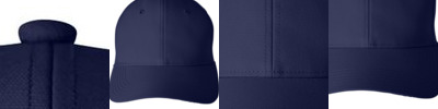 100% polyester Moisture-management Structured, six-panel Pre-curve bill Performance sweatband Hair-friendly adjustable hook & loop closure Silicone cat logo on back