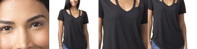 - Hemmed sleeve ends and scoop shirt tail bottom