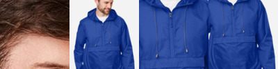 - Center front coil zipper closure with shock cord at hood, and self-fabric chin guard