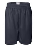 Badger Adult Mesh Tricot Short With 9 Inseam. 100% polyester, 70 denier mesh with solid tricot liner. Athletic cut. Superior fit. Covered elastic waistband and drawcord.
