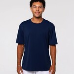 A4 ADT SOFTEK RINGR T. 65% Recycled Poly, 35% Natural Cotton. 4.1 ounces. Moisture wicking to keep athletes cool. Stain and odor release for easy care. Earth friendly. Contrast ribbed collar and cuffs. Easy tear away label for rebranding.
