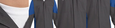 - Sizing by neck measurement, color swatch denotes sleeve length