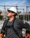 - Color blocked shirt with hi vis upper half for ANSI compliance and grey lower half to conceal dirt and stains