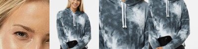 W23716 Women's Sueded Fleece Colorblocked Crop Hooded Sweatshirt