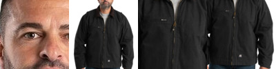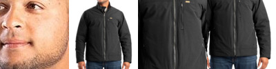 4.7 oz./yd², 60/40 cotton/ polyester sanded duck Water-resistant, wind-resistant fabric blocks the elements Micro-duck fabric is tough and durable while providing a soft hand feel Zip through, fleece-lined collar for warmth and style Drop tail traps the heat Snap adjustments on cuffs Multiple pockets including fleece-lined front pockets, three zippered outside pockets